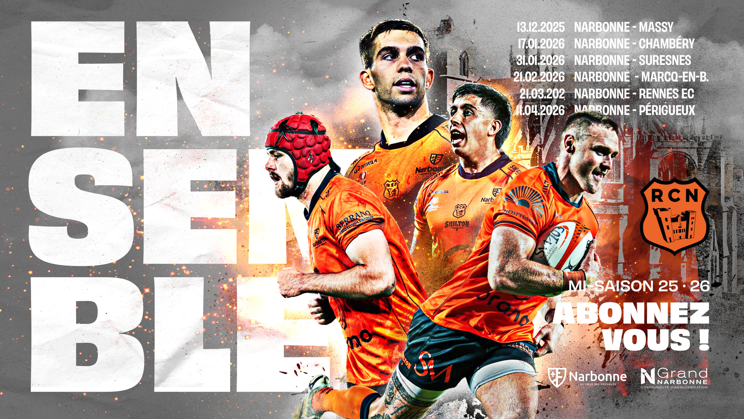 Le Racing Club Narbonnais lance sa campagne d’abonnement mi-saison pour permettre à tous nos supporters de rejoindre l’aventure en cours de route… et d’écrire, ENSEMBLE, la suite de notre saison 2025-2026 !